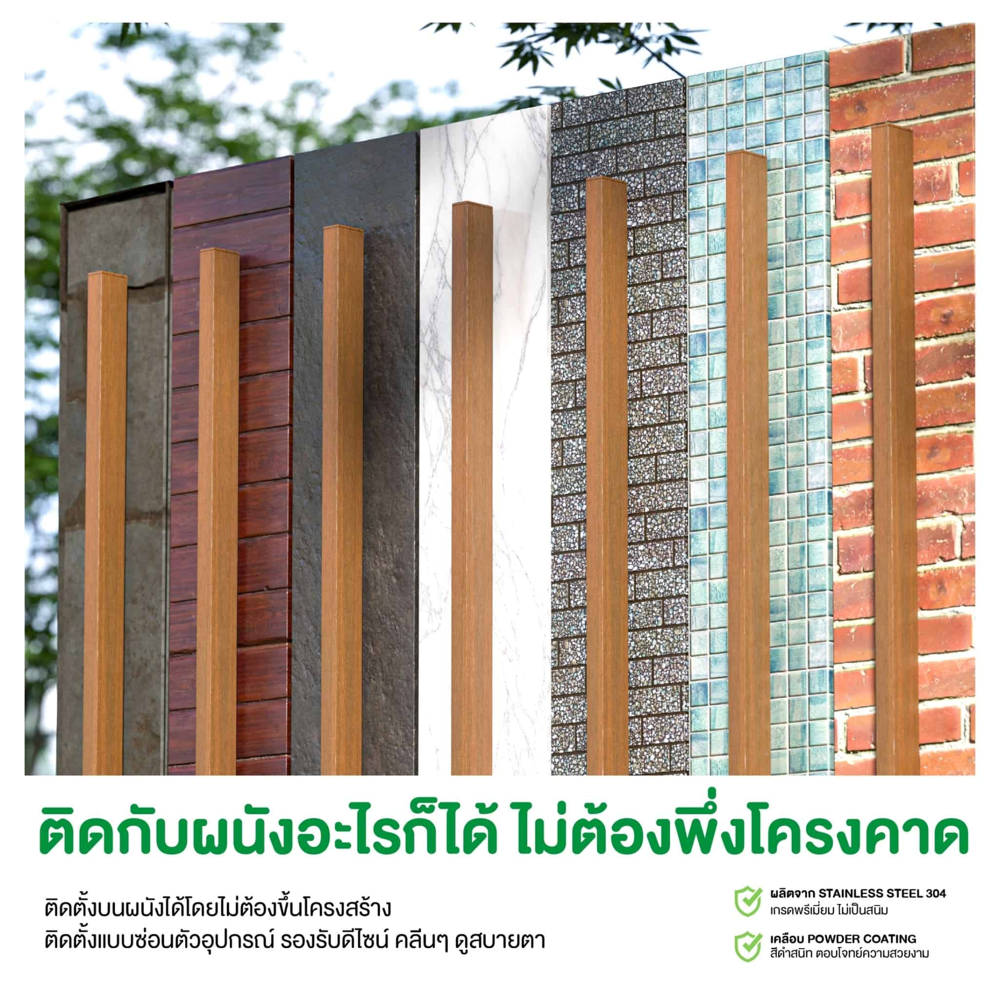 นวัตกรรมใหม่ ที่จะช่วยให้การติดตั้งง่ายขึ้น แข็งแรง และยังไม่ช่วยให้งานติดตั้งที่เนี้ยบมากขึ้นอีกด้วย งานจะดูสวย คลีน สบายตา ตอบโจทย์ทุกดีไซน์ ติดกับผนังอะไรก็ได้ ไม่ต้องขึ้นโครงสร้าง มีความแข็งแรงทนทาน เคลือบป้องกันสนิมแบบ Powder Coating