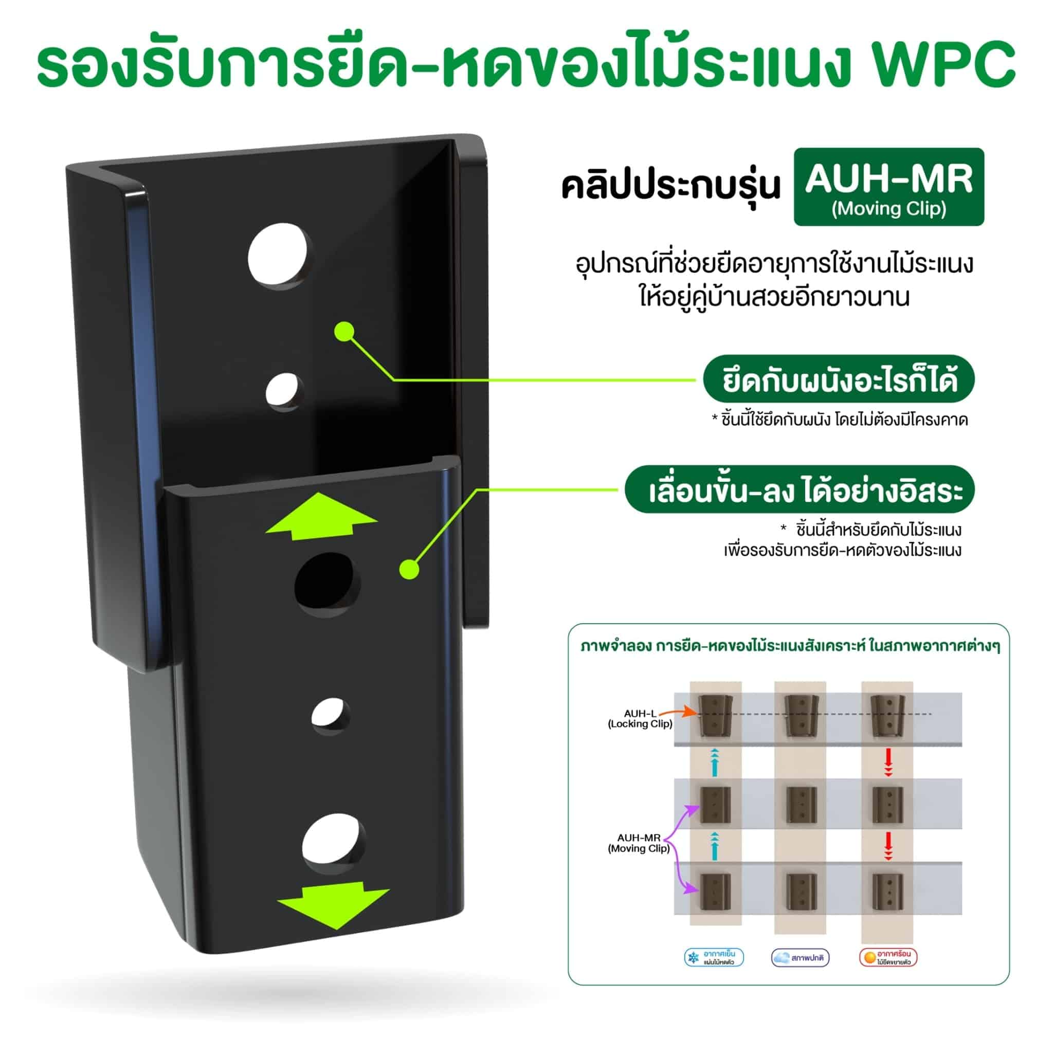 ✅เลื่อนขึ้น-ลงได้อย่างอิสระ เพื่อรองรับการยืด-หดตัวของไม้ระแนง
