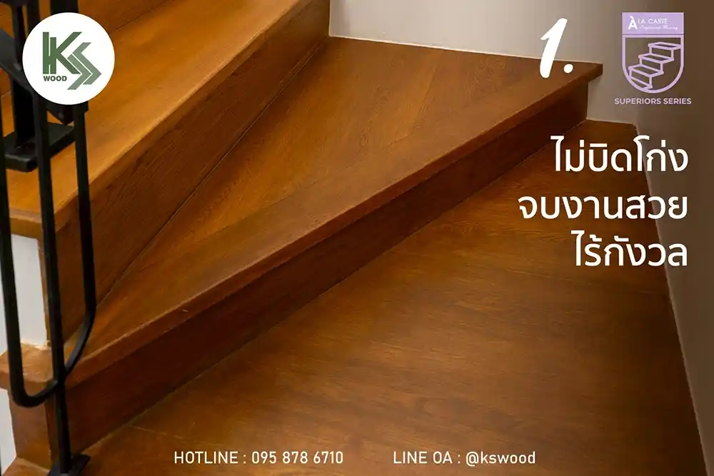 ไม้บันไดของ KSWOOD ไม่ได้สวยแค่ภายนอก แต่ยังทนทานต่อการใช้งานหนัก ทนรอยขีดข่วน ไม่ผุ ไม่บวมน้ำง่าย ทำให้ช่วยลดค่าใช้จ่ายในการดูแลและบำรุงรักษาในระยะยาว ช่วยให้บ้านดูใหม่อยู่เสมอ และเพิ่มมูลค่าทางอสังหาริมทรัพย์ได้ในอนาคต