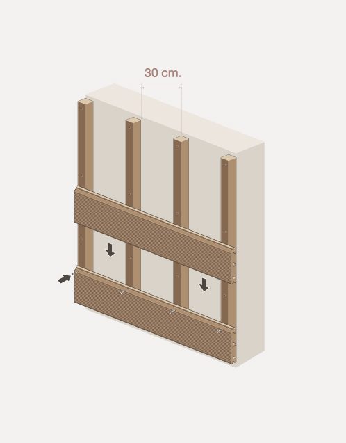 - ติดตั้งโครงตงโดยเว้นระยะห่างตามคำแนะนำของผู้ผลิต ซึ่งโดยทั่วไปอยู่ที่ประมาณ 27.5 – 30.5 เซนติเมตร