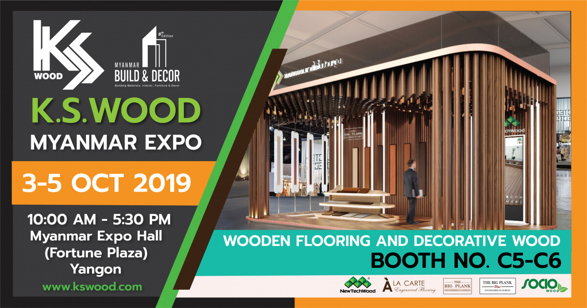 บริษัท เค.เอส. วู้ด จำกัด เข้าร่วมจัดแสดงผลิตภัณฑ์และนิทรรศการผลงานโปรเจ็กต์ต่าง ๆ ที่งาน “Build and Decor 2019” ที่เมืองย่างกุ้ง ประเทศเมียนมาร์ จัดขึ้นในวันที่ 3-5 ตุลาคม พ.ศ. 2562