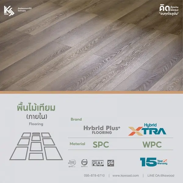 มาพร้อมกับเทคโนโลยีคลิกล็อกที่ดีที่สุด 5G-Click Lock System ( ลิขสิทธิ์ Välinge จากประเทศสวีเดน ) และรับประกันสินค้ายาวนาวถึง 15 ปี